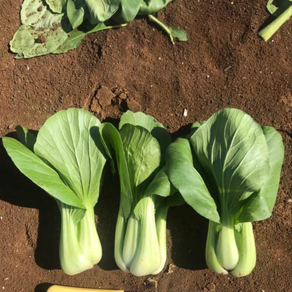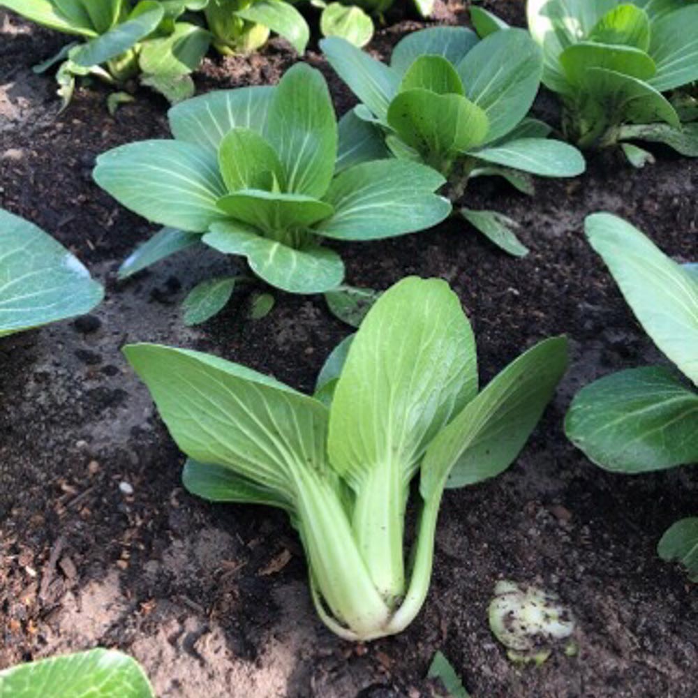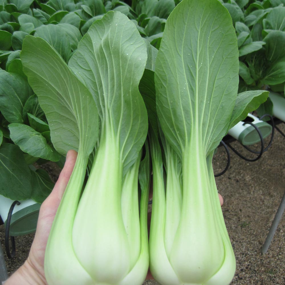 - Green stem pak choi seed variety with glossy green leaves