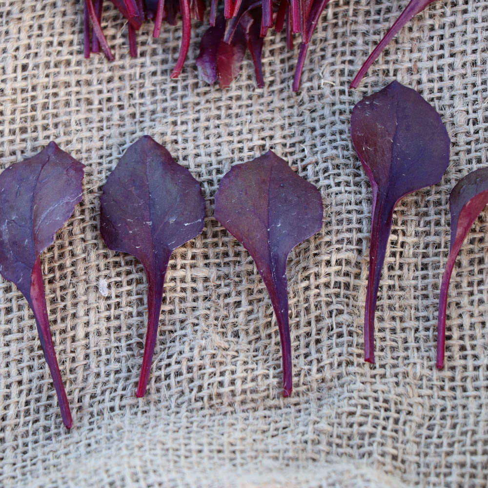 - Intense deep red/purple leaves, adding great colour as a micro-herb option