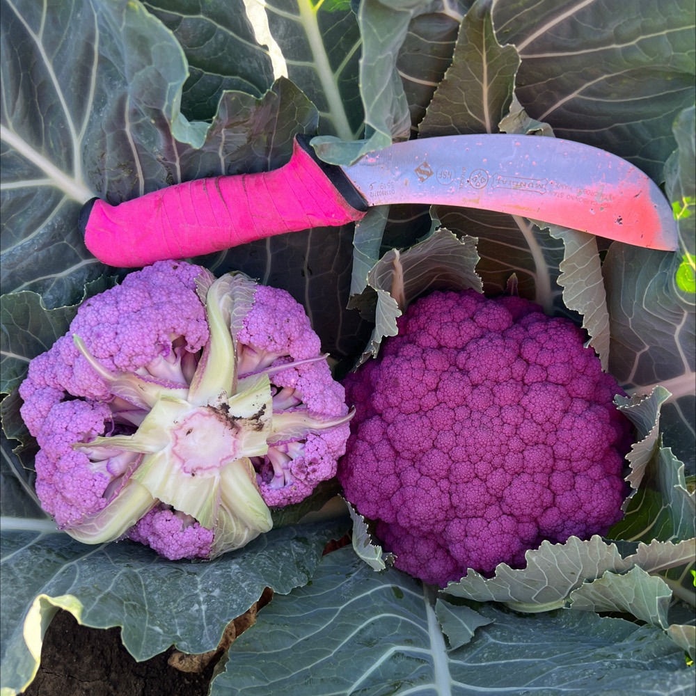 - An exciting purple cauliflower with large frame size, and very dark purple curd colour