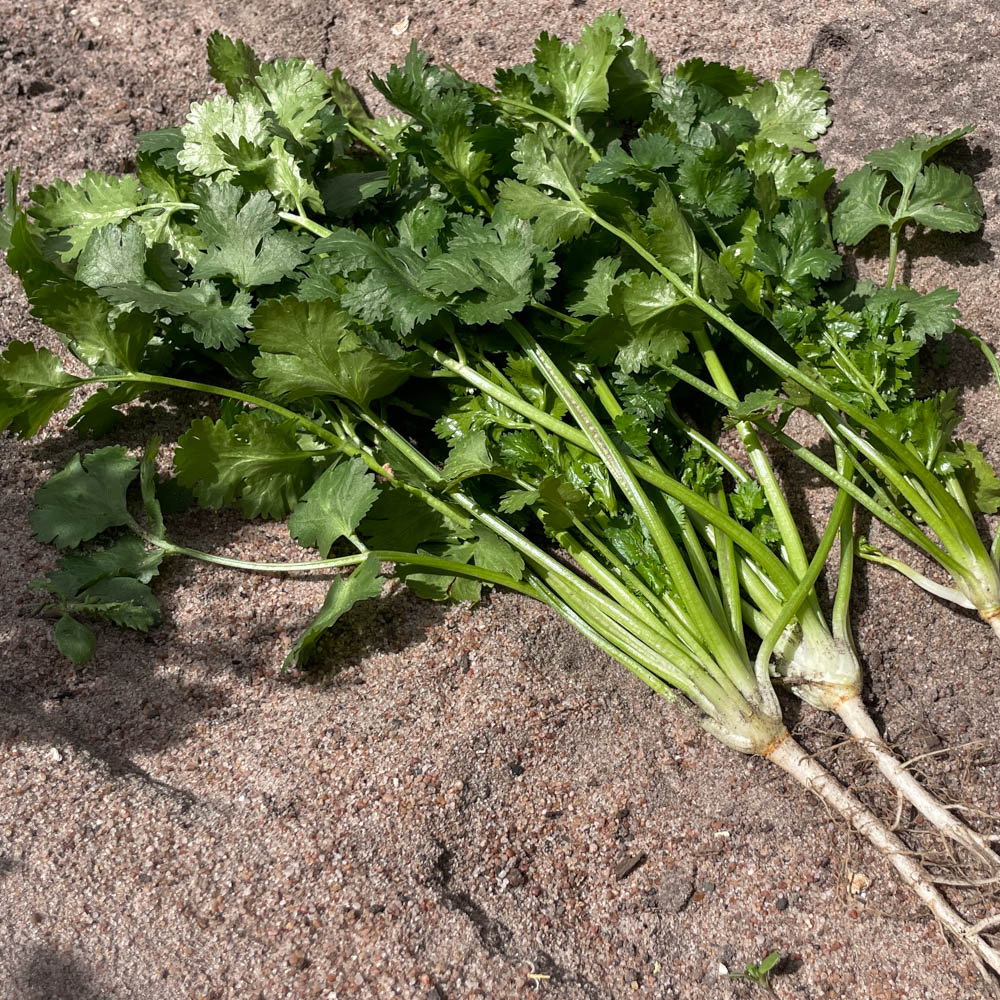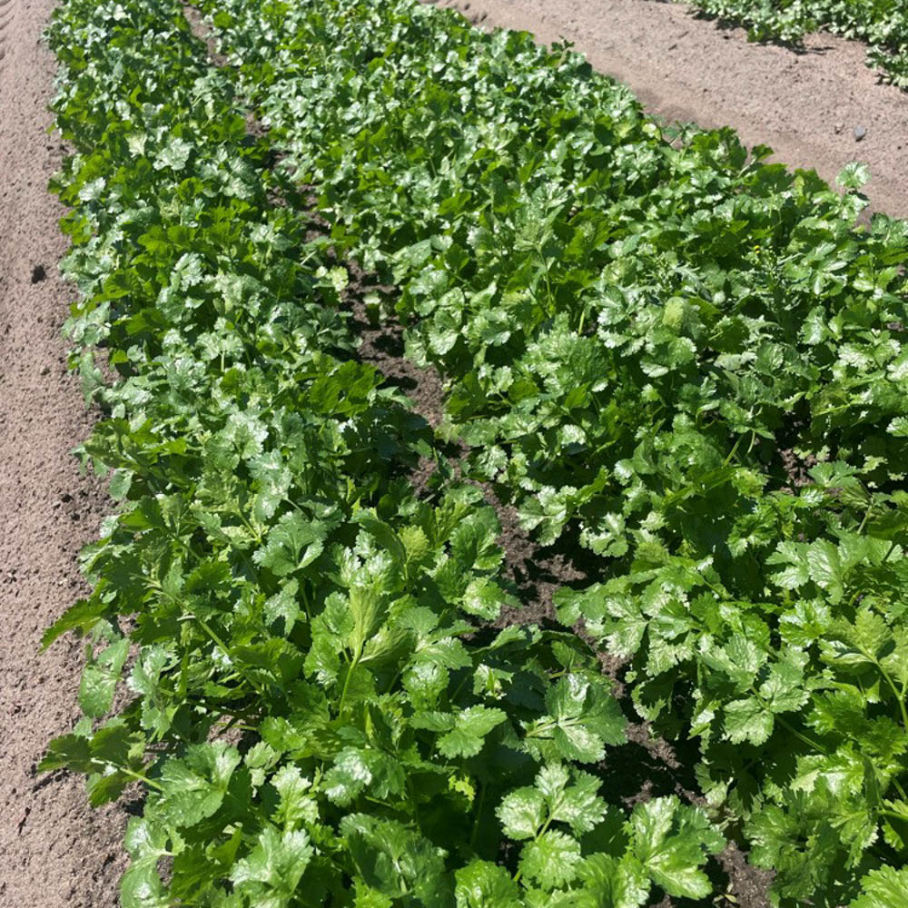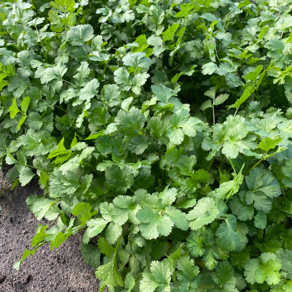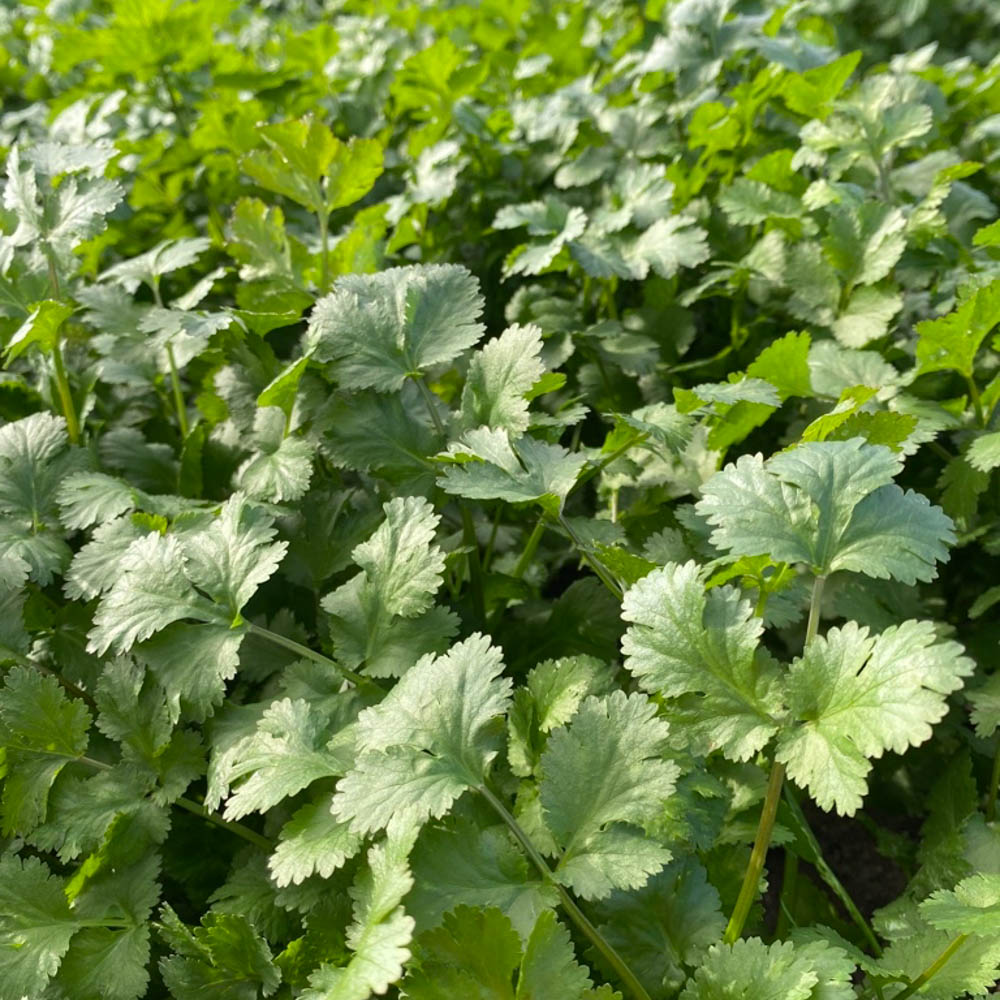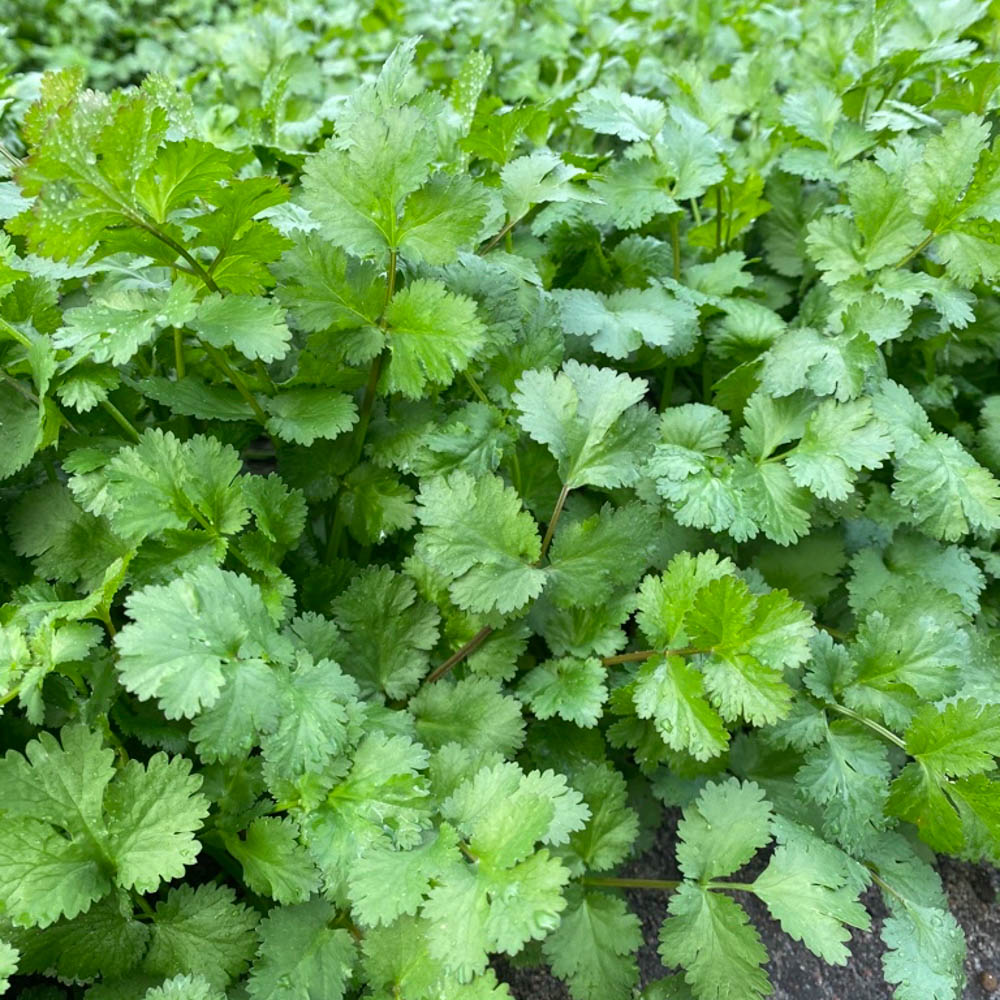- New coriander with very dark glossy green leaves