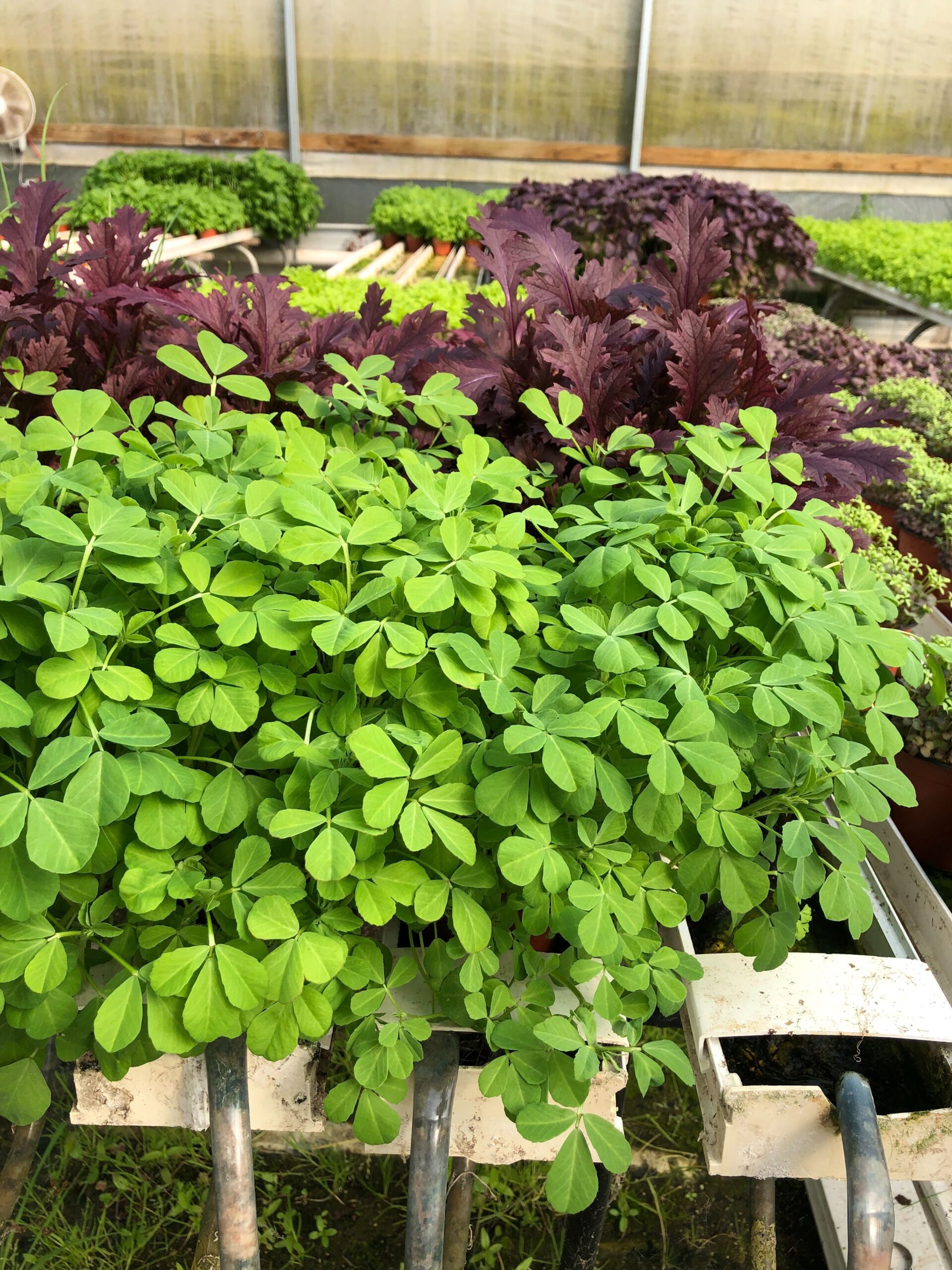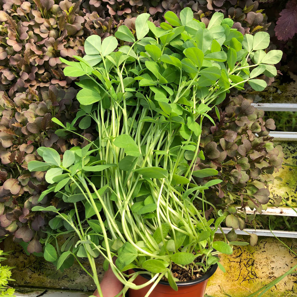 - Popular in Indian cuisine, fenugreek (or methi) has elongated, cup-shaped, green cotyledons with true leaves reminiscent of peas or clover