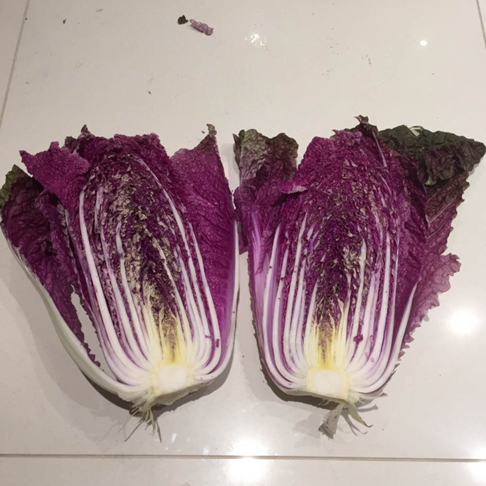 - Medium to large size red Chinese cabbage with a uniform cylindrical head shape