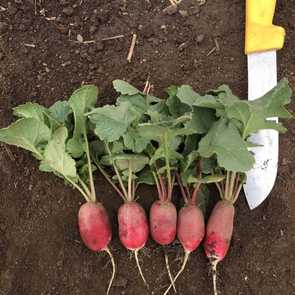- These radishes grow quite vigorously with medium sized green tops