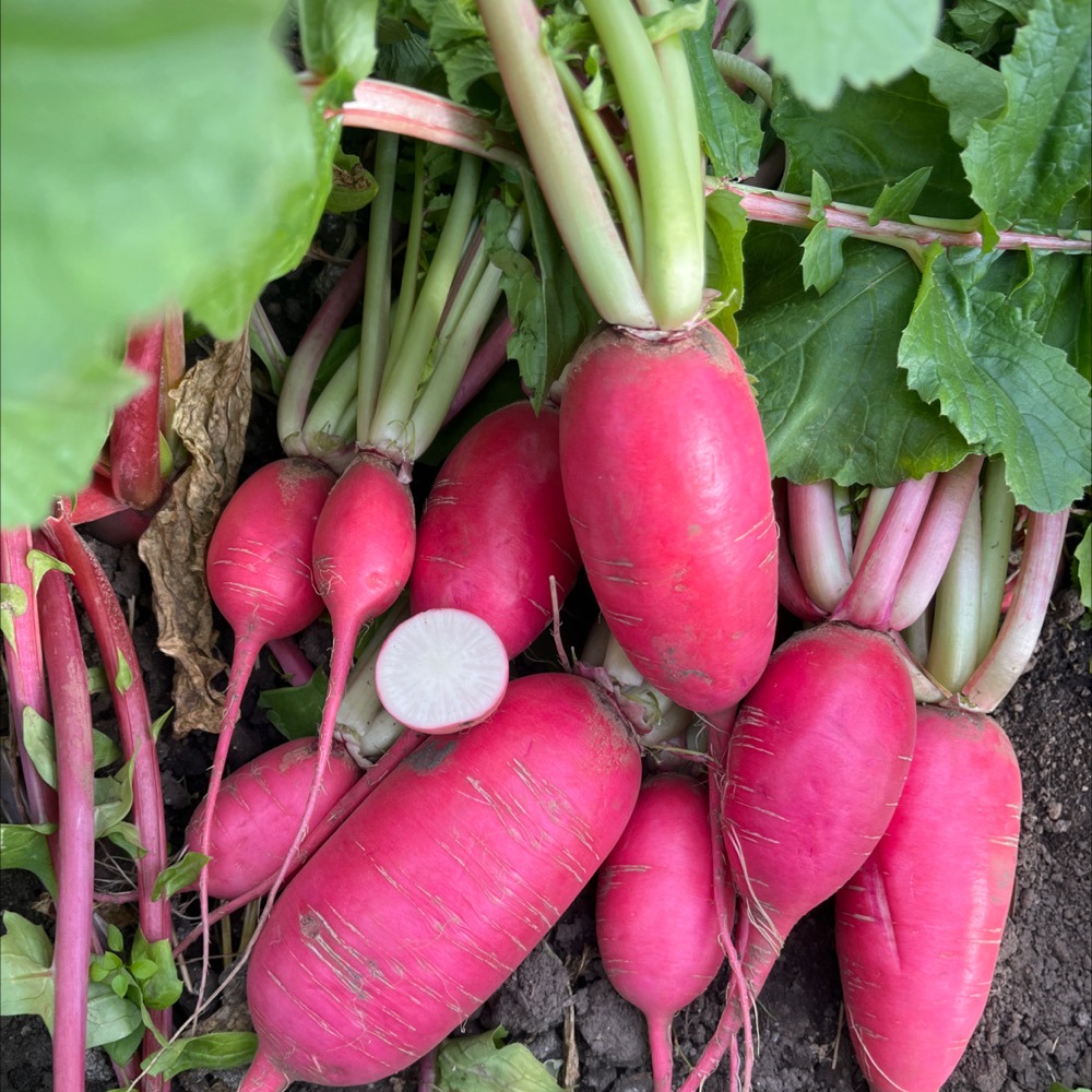 - Specialty daikon radish, with brilliant red smooth skin