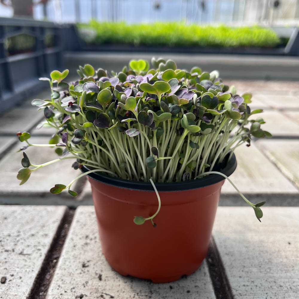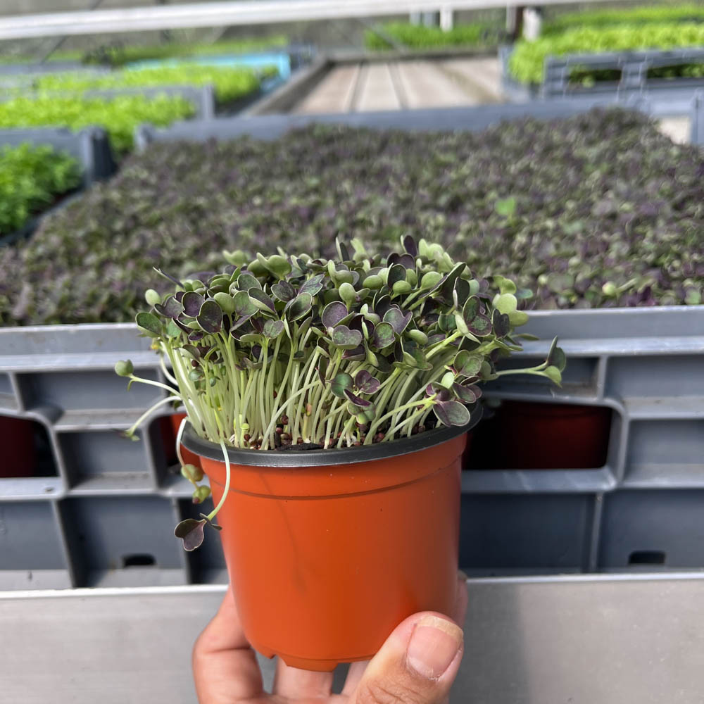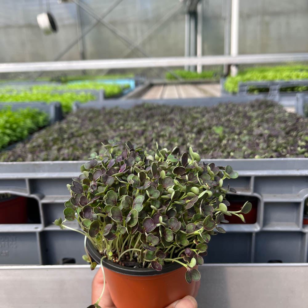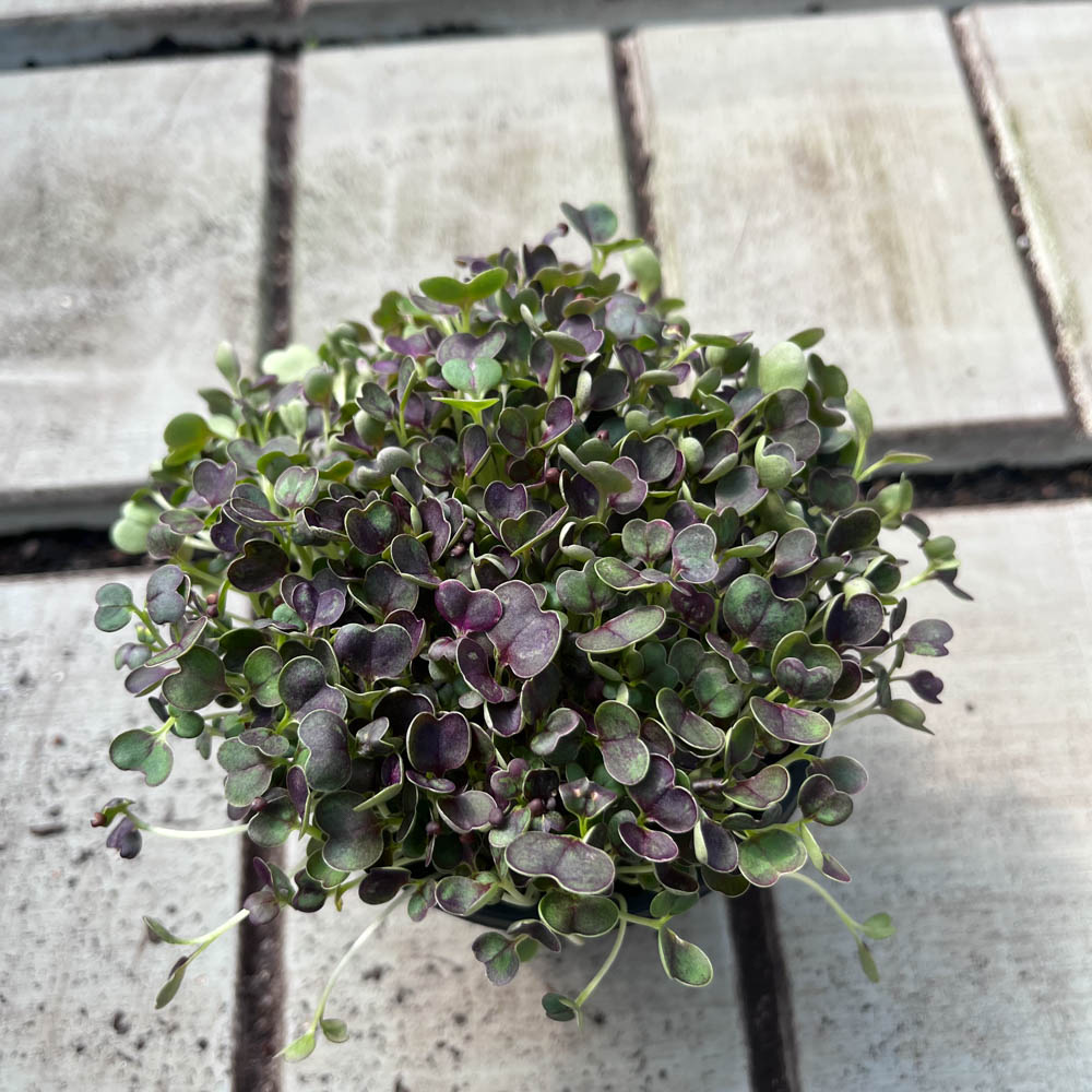 • Purple Heart has dark purple heart shaped cotyledons, with pak choi shaped leaves